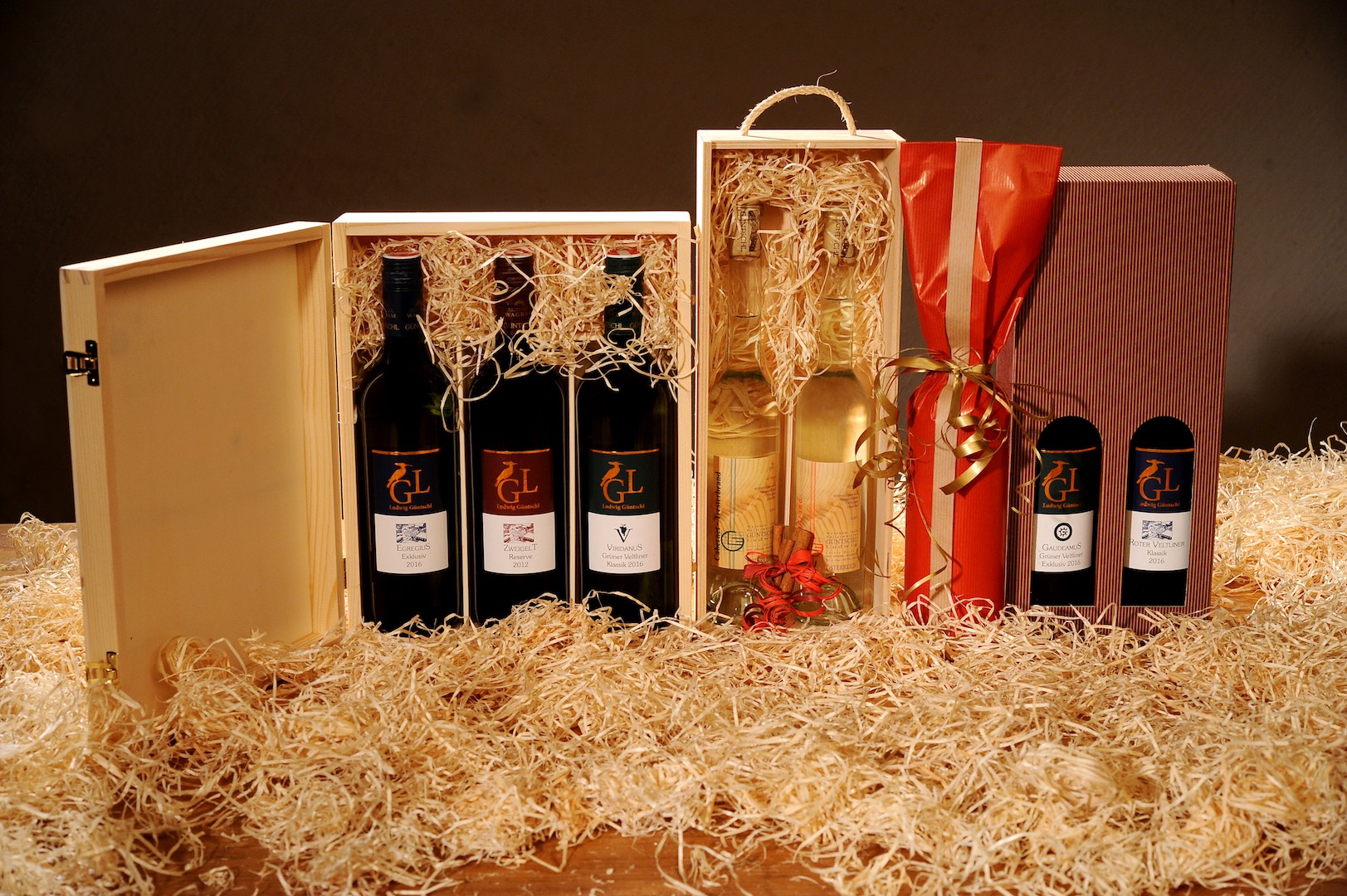 Standardgeschenkverpackungen sind bei uns immer erhältlich und können während der Öffnungszeiten des Panoramaheurigen vor Ort gekauft werden, sowie jederzeit per Email oder Telefon vorbestellt werden! Geschenke in Holzboxen sowie Flaschen in Übergröße bitte immer vorbestellen - kontaktieren Sie uns einfach!